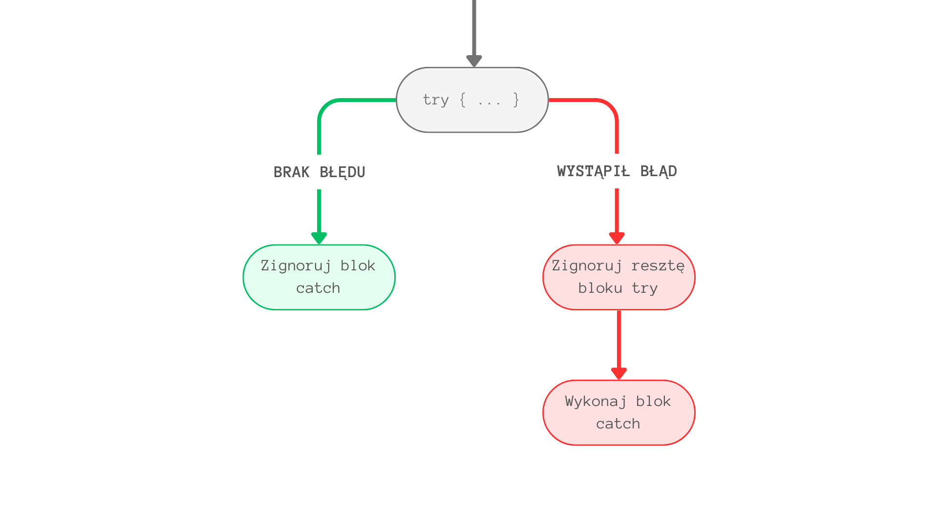 Oczywiście błąd nie musi wystąpić (jeżeli występuje zawsze, to z naszym kodem prawdopodobnie coś jest nie tak), a w takiej sytuacji catch nie zostanie w ogóle uruchomiony. Innymi słowy kod wewnątrz bloku catch wykona się tylko wtedy, gdy w bloku try wystąpi jakiś wyjątek.