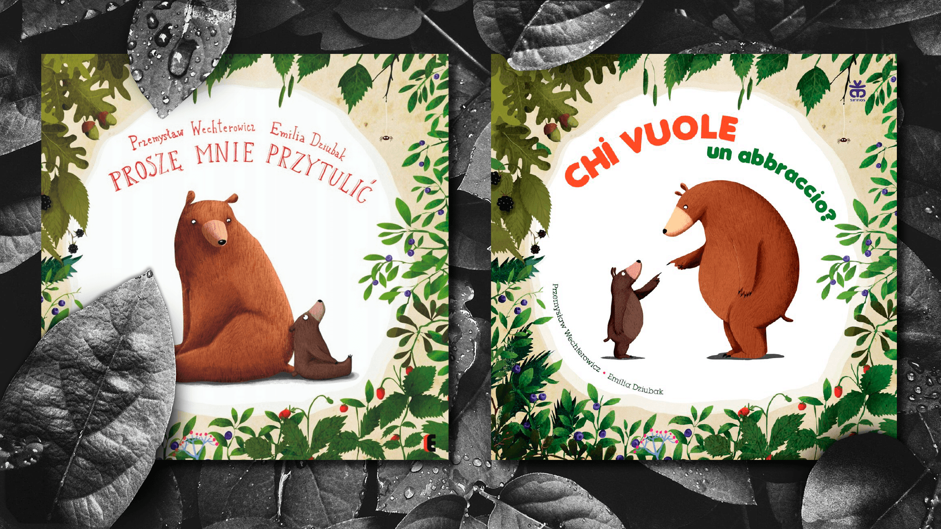 Zwróć uwagę na okładkę tej samej książki napisanej w języku polskim i włoskim. Wersja rodzima wykorzystuje delikatny, lekko „niezdarny” font w ciepłym odcieniu brązu. Sprawia to wrażenie przytulności i stonowanej wesołości. Odczucia te przenosimy na bohaterów i jawią się nam jako miłe, spokojne, skryte zwierzątka.